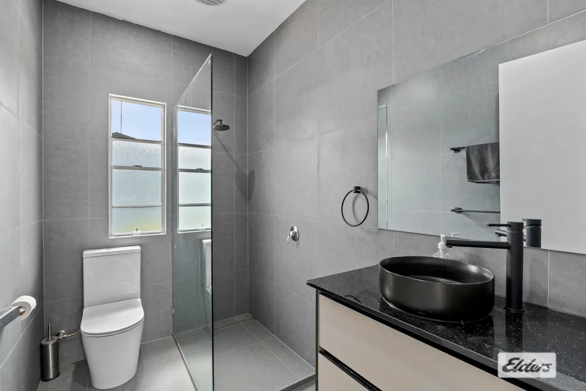 Off this area, there is a full bathroom, accommodating the central part of the home. The tiling in this wet area gives it a stylish elegance.