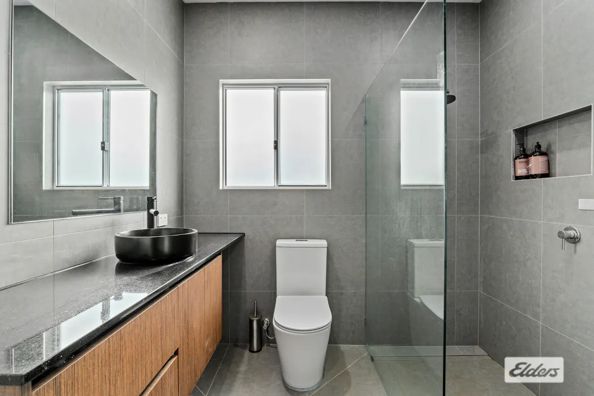 Bedroom 4 also leads off this passageway and has discreet access to the back door. It too has built ins and a ceiling fan. The large master bedroom is also off this passageway. It provides a spacious and stylish ensuite with separate walk-in robe. It has both aircon and a ceiling fan for all-year-round comfort. Not only is the master bedroom the ideal place for occupants to retreat to at the end of a busy day, the finishings in the ensuite are as stunning, and perfectly matched, with the other wet areas of the home.
