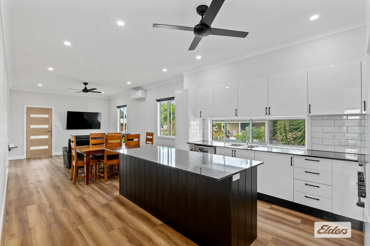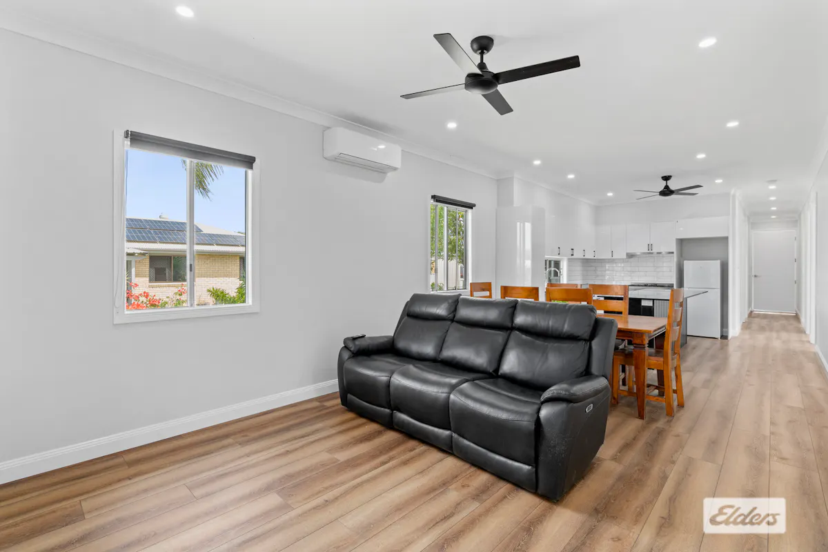 In addition to the fans in the open-plan living space, there's a reverse cycle aircon providing year-round comfort, with great air flow. The timber-look flooring in this part of the home is easy to keep clean and can accommodate all-weather foot traffic and wear. This easy-care flooring continues throughout this immaculately presented property.