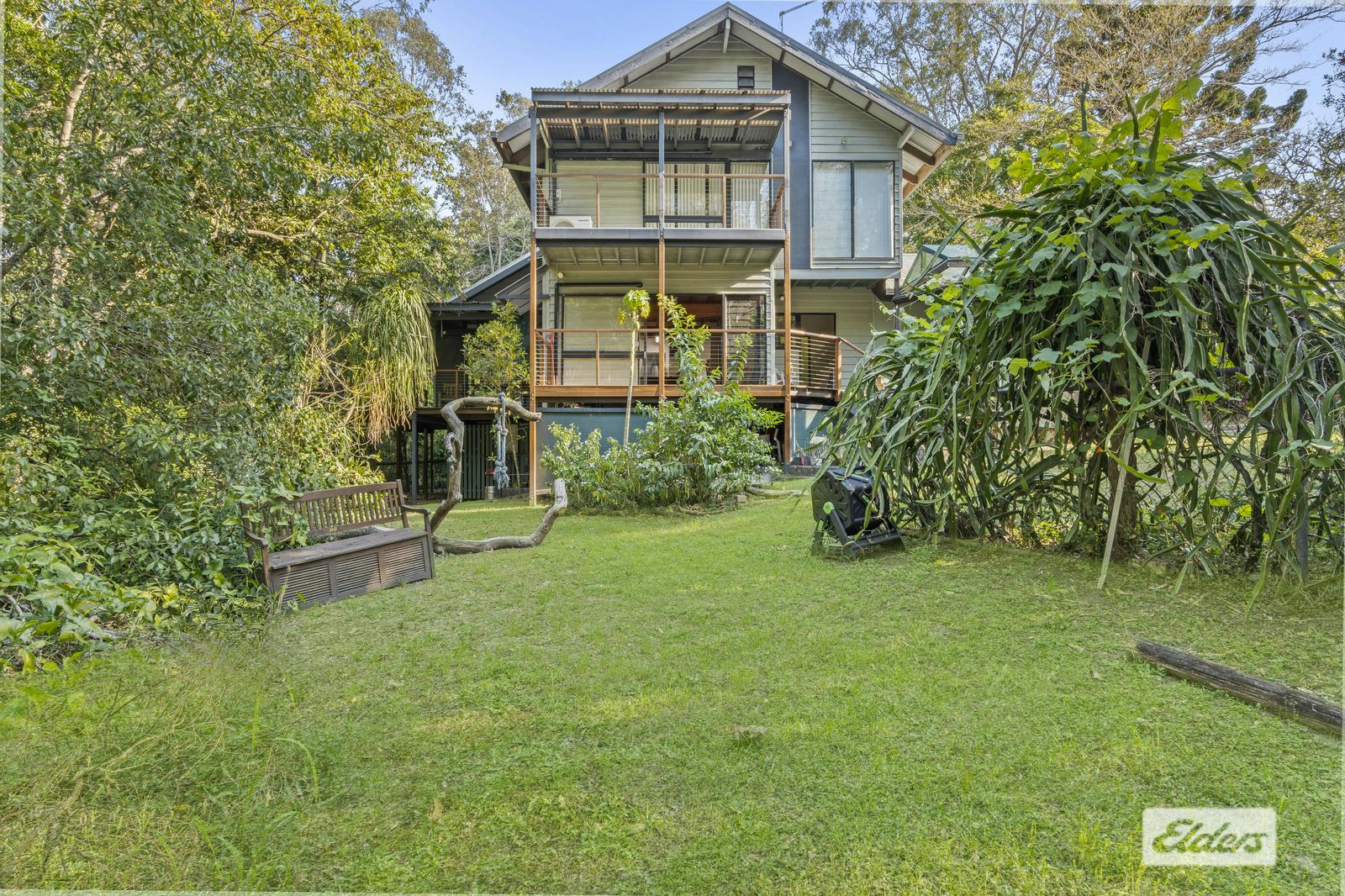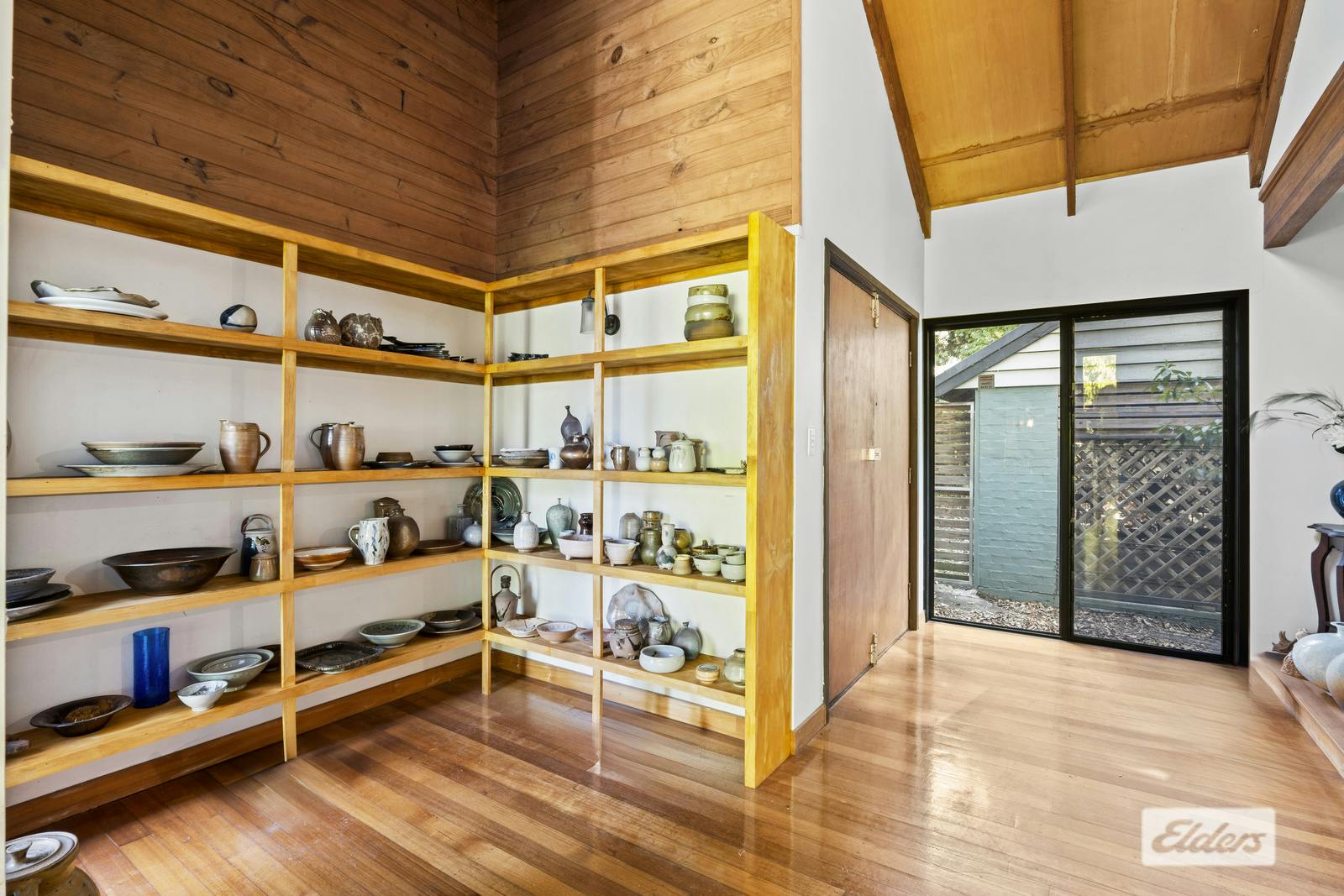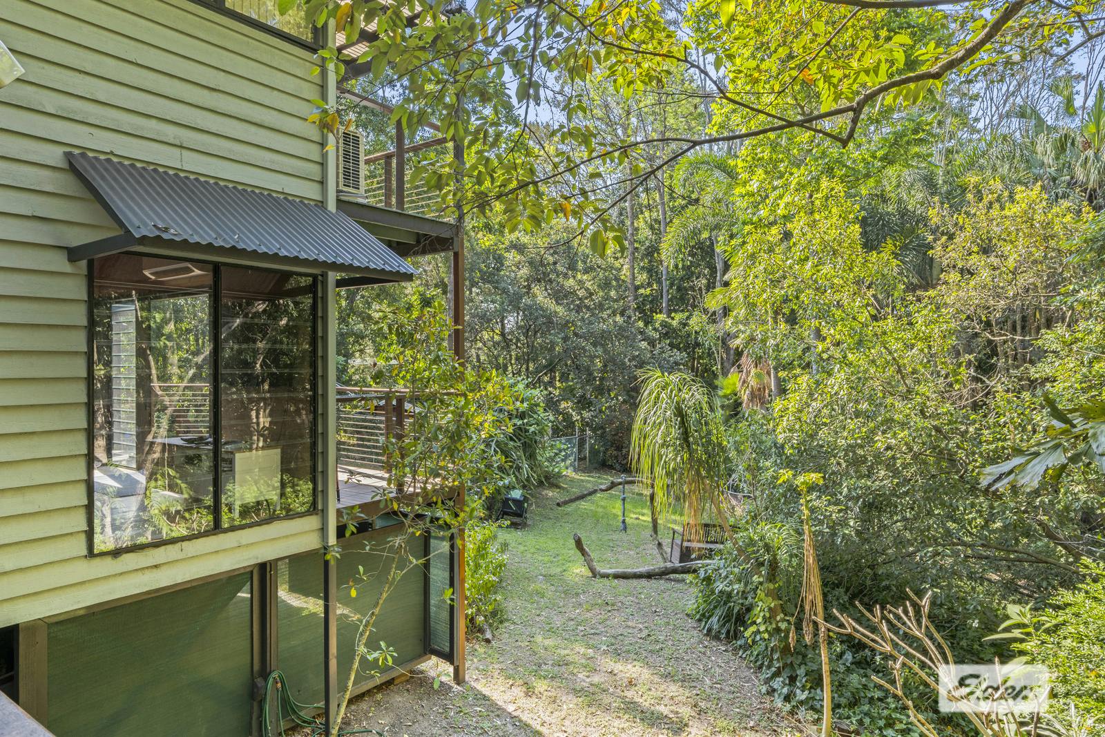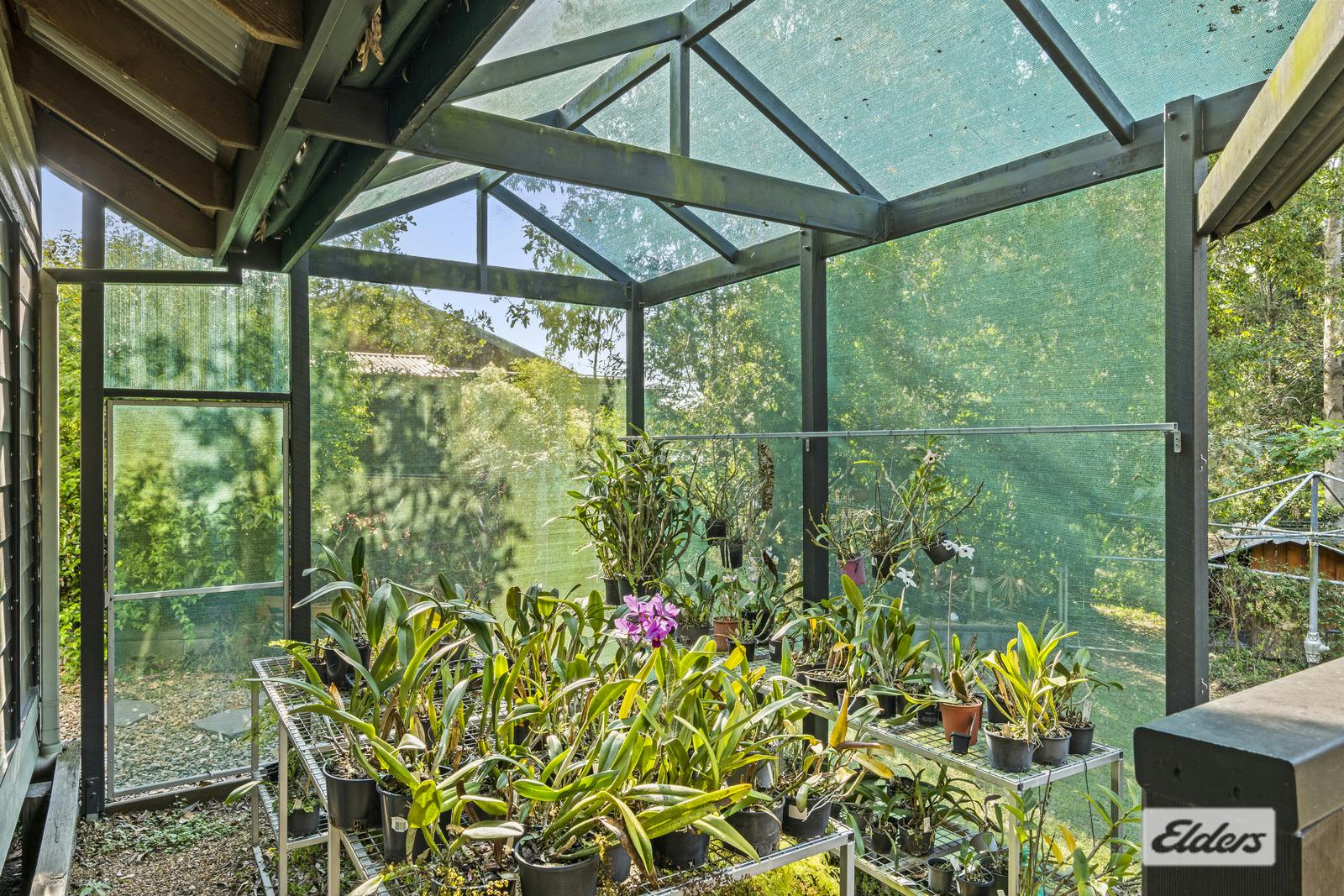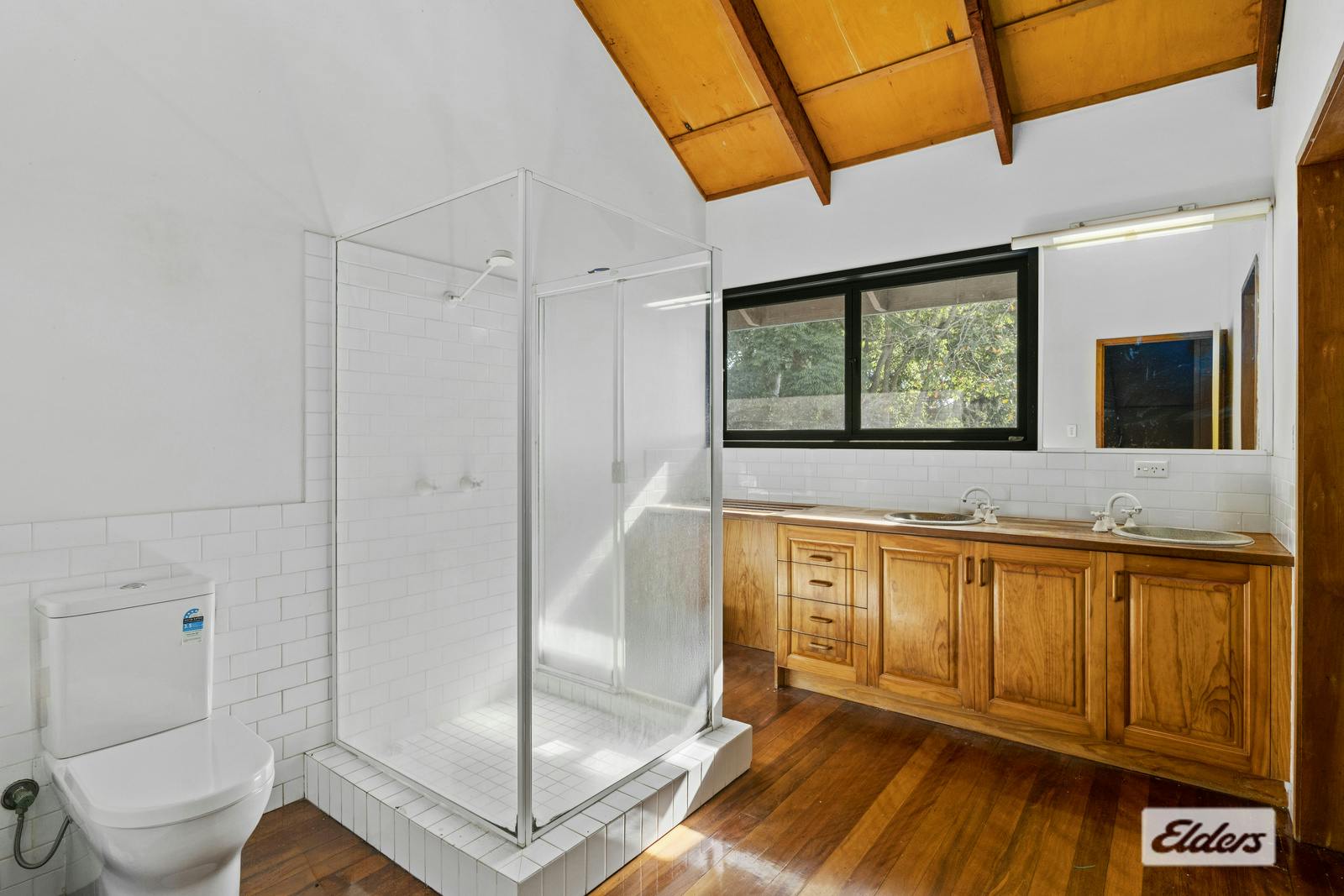 Built in 1980, this 5624m² property has 3 road frontages, the main house being well-placed within the tranquil bush setting. Although it's only a short walk to town, the main home presents as a refuge, a place where you can become lost in the oasis-like surrounds. The entrance invites one into the home, with generous display areas and easy access to the stairs leading to the upper level. The lower level contains the kitchen, dining, living, 3rd bedroom and utility areas. The kitchen is well appointed, with ample storage and work space. Cathedral-style ceilings, and floor-to-ceiling louvre windows and sliding doors, add to the airy feel of the open-plan kitchen and dining area, which has reverse cycle air con. The space opens out to the partly wrap-around veranda, from where you can take time out of a busy day to listen to the birds. The separate lounge is expansive and also has veranda access via sliding doors. The 3rd bedroom is large, with built-ins, bathroom and separate toilet. This bedroom looks into the fernery, enhancing the natural appeal of the outlook. A spacious laundry completes the functionality of this level. The open plan area leads to the back yard, via a generous deck. Accessing the upper level, you will find the second bedroom, also with built-ins. The master bedroom occupies the entire end of the upper level and can only be described as a retreat. It has a walk-in-robe, large ensuite facility and air con. While the room will accommodate the grandest of beds, there's plenty more space to include a powder area or home office desk. Sliding doors lead to a separate private deck overlooking the tranquillity of the stunning suburban bush setting. There are a number of nooks in this delightful home, which may accommodate your student – or home office – desk and shelves.